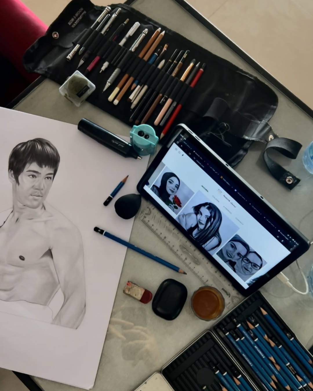 رسم يدوي بالفحم أو القلم الرصاص، بإتقان و حب. توصل حتى لباب دارك